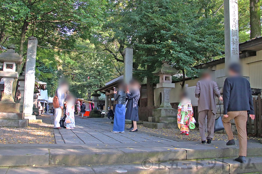 ※調神社 境内入口と参拝の七五三ご家族の様子|画像提供:七五三ドットコム