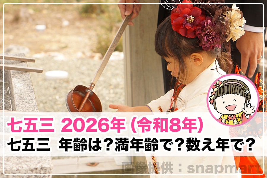 数え年、満年齢でお祝いする場合、2026年のそれぞれの七五三対象のお子様は、