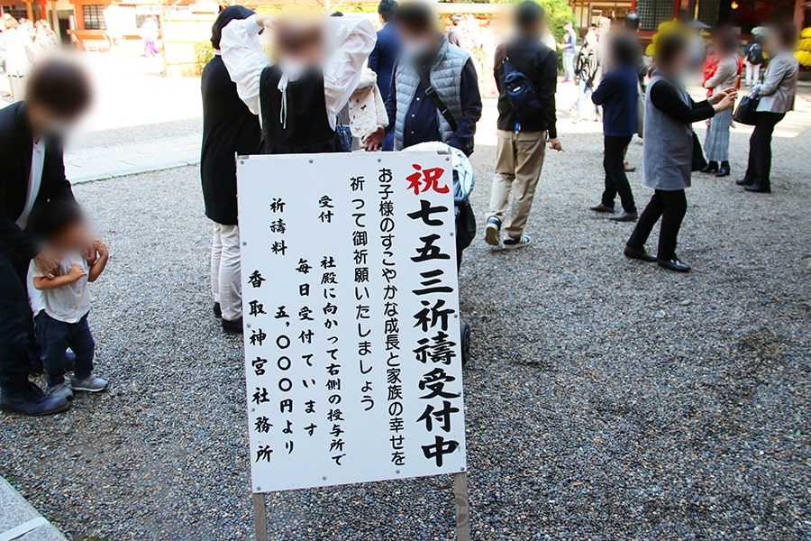 ※香取神宮 七五三のお祝いと祈祷受付案内の看板の様子