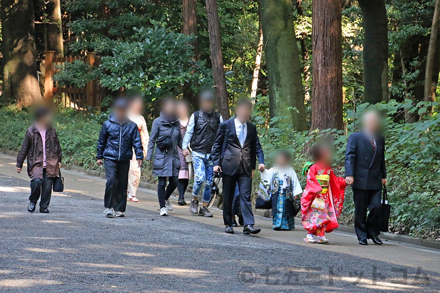 ※明治神宮 駐車場から本殿の方に向かう七五三ご家族の様子