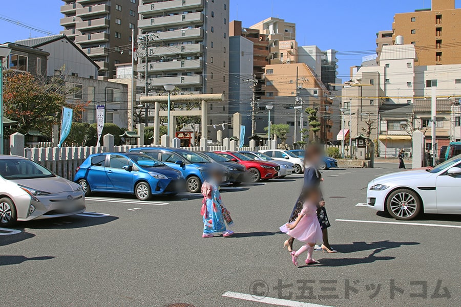 ※比治山神社 御祈祷を終えて車に戻る七五三ご家族の様子