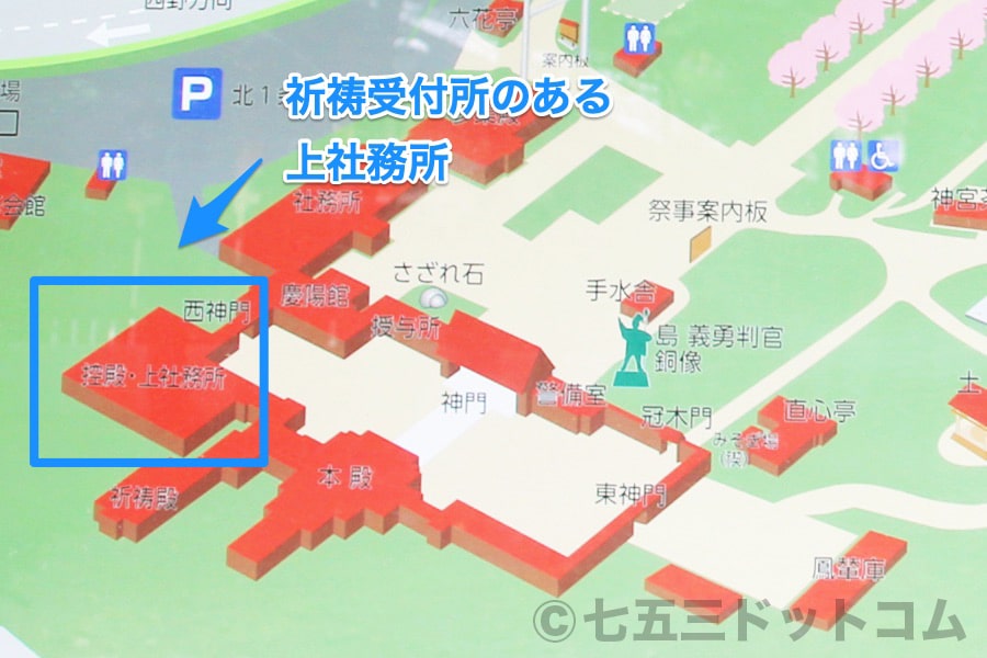 ↑上図の青枠で囲まれたところ(青枠・青文字は当サイトにて加筆)のところに、祈祷受付所があります。