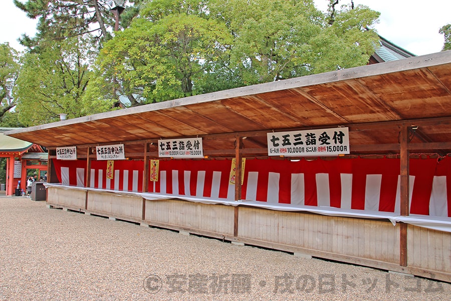 ※住吉大社 七五三のお参りシーズンに臨時で設営される七五三専用の御祈祷受付の様子|画像提供:七五三ドットコム